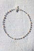 Sterling silver beaded necklace with freshwater white pearls. Finished with Yam's signature Biwa pearl clasp.