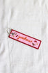 A fun embroidered tag to either keep your keys handy or attach as an accessory.